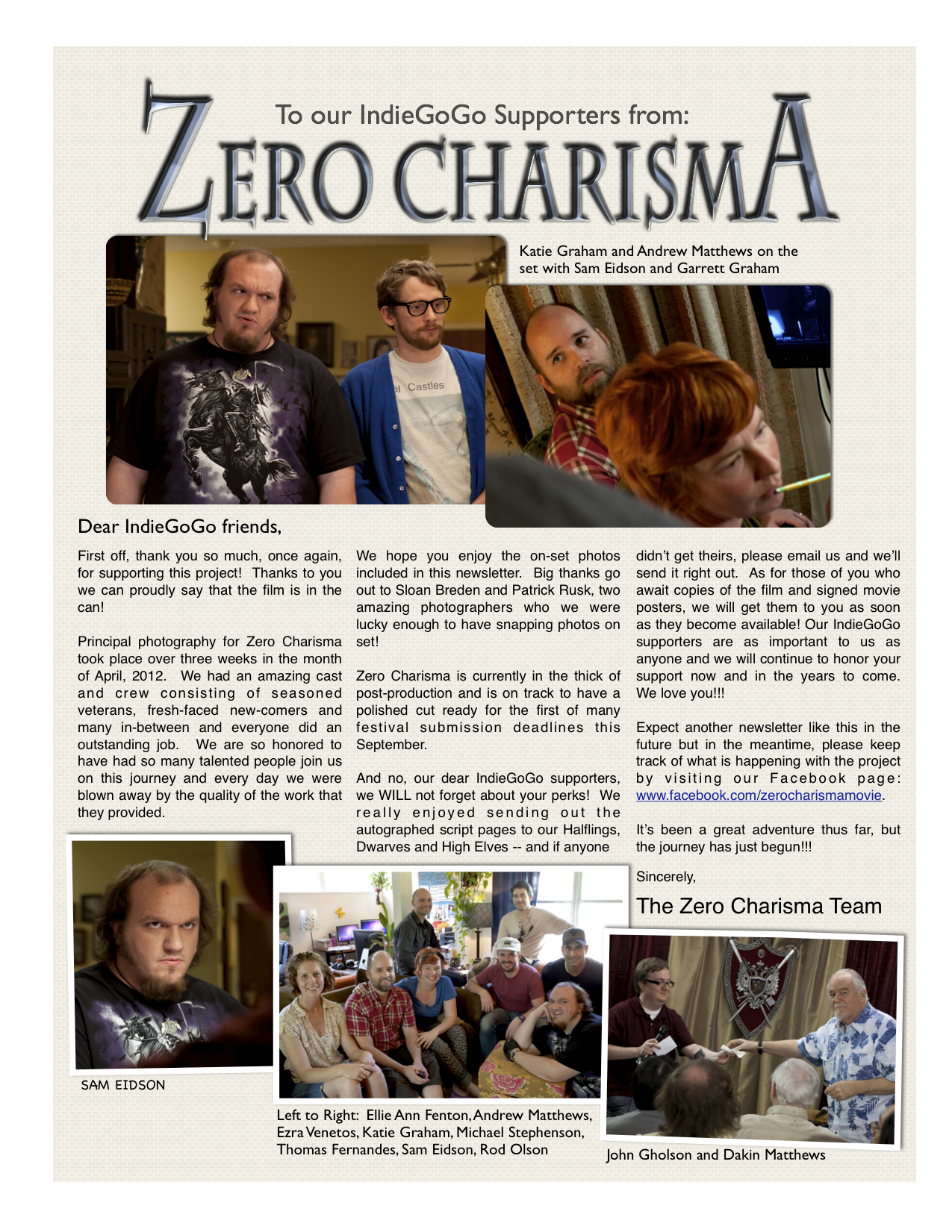A crowd-funded indie film that I’m part of (in a very small way) is in post-production. It’s called ZERO CHARISMA and is a comedy about a group of Dungeons & Dragons players and other comic book/store nutters. Anyone involved in roleplaying or comics will instantly get this film. The film makers say it will be ready for the upcoming indie film festival circuit where hopefully it will be well received.