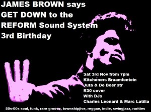 Please join us as we hit 3 years hard! We’ll be playing some slow jams from 7pm (to catch the bar crawling market hipsters) and will build up to our regular 9pm start time. Cover is R30 and we’re aiming for copious amounts of candy floss at the door.